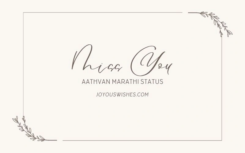 Are you looking for the perfect way to express how much you miss someone special in your life? Miss You Aathvan Marathi Status is a beautiful collection of heartfelt Marathi captions and emotional messages that capture the feelings of longing and affection. “Aathvan” (आठवण) in Marathi means “memory” or “remembrance,” and at Joyous Wishes, we understand how powerful these emotions are. Whether you want to share Miss You Aathvan Marathi Status for someone far away, a loved one, or even to express the pain of missing them on special occasions, our carefully curated collection speaks directly to your heart.