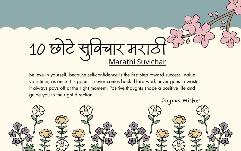 We sincerely hope that these 10 छोटे सुविचार मराठी have brought a smile to your face and warmth to your heart! 💝 At Joyous Wishes, our mission is to spread positivity through meaningful सुविचार मराठी that can transform your daily life. Each of these 10 छोटे सुविचार मराठी carries a timeless message that remains relevant in today’s fast-paced world. Remember, small thoughts can lead to great changes, and these 10 छोटे सुविचार मराठी are your perfect companions for personal growth and spiritual well-being. 🌺